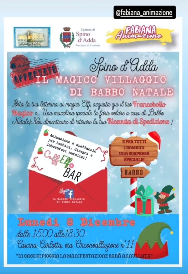 Anche quest’anno aspettiamo i bambini a spedire le loro letterine a Babbo Natale… Vi attenderanno i nostri elfi con animazione, attvità varie e il nostro bar con squisite dolcezze per scaldare questo pomeriggio magico…